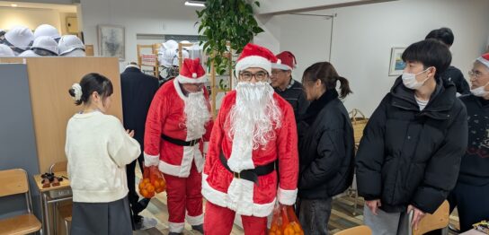今日は今年最後の登校日。そして楽しみにしていたクリスマス会、教室の机をくっつけて